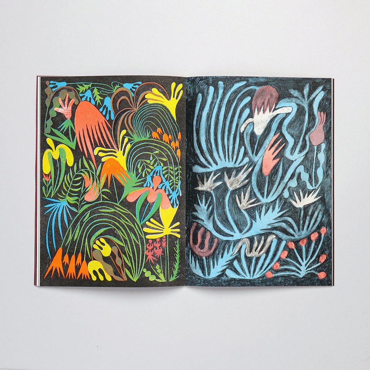 printed with riso, with the colors black, green, aqua, yellow, red, fluo orange and fluo pink, at the Hurrikan studio